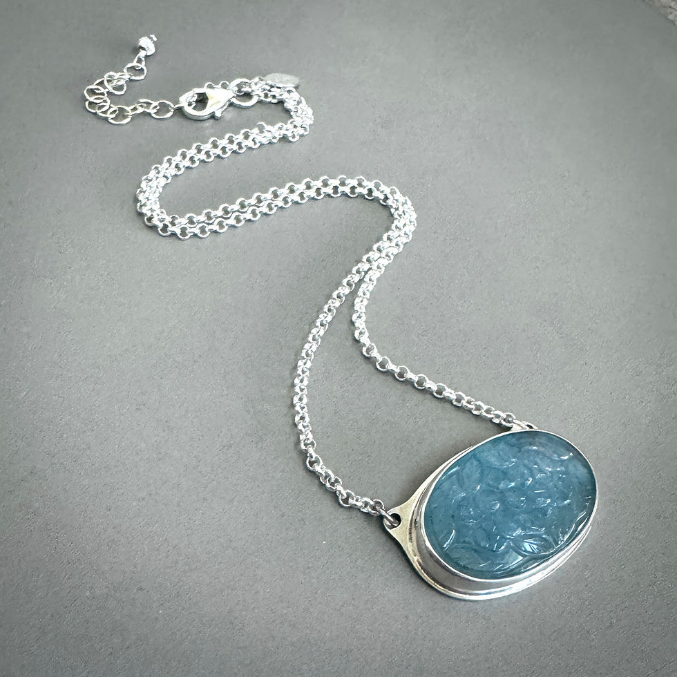 Carved Aquamarine & Sterling Silver Necklace